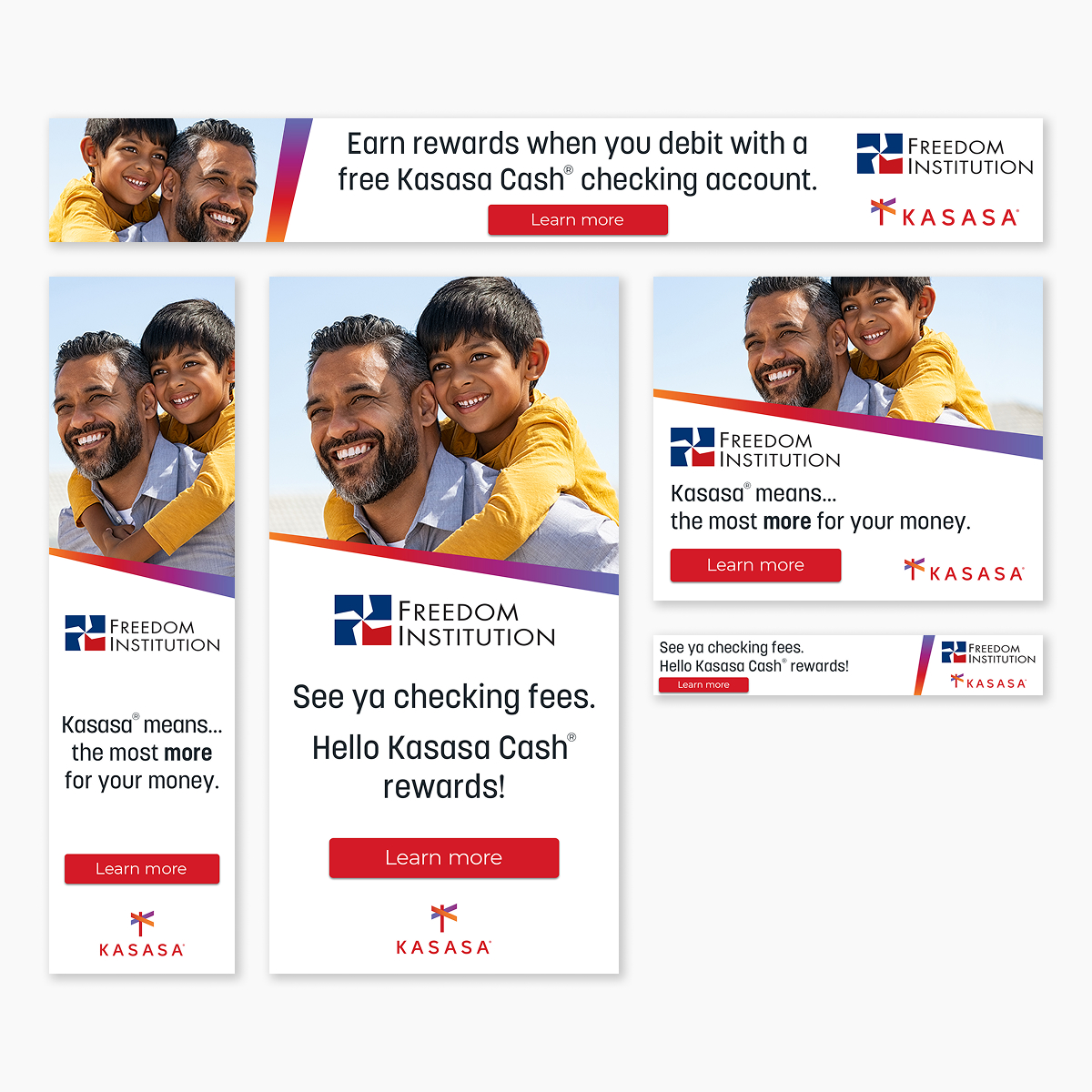 Following a company rebrand, I designed a suite of print and digital assets for Kasasa’s B2C co-branded campaign, Kasasa Means More, translating the refresh into customizable templates for community banks and credit unions.